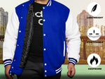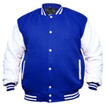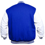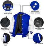 Royal Blue/White Men's Varsity Jacket Causal Slim Fit Cotton Letterman Baseball Bomber Jackets