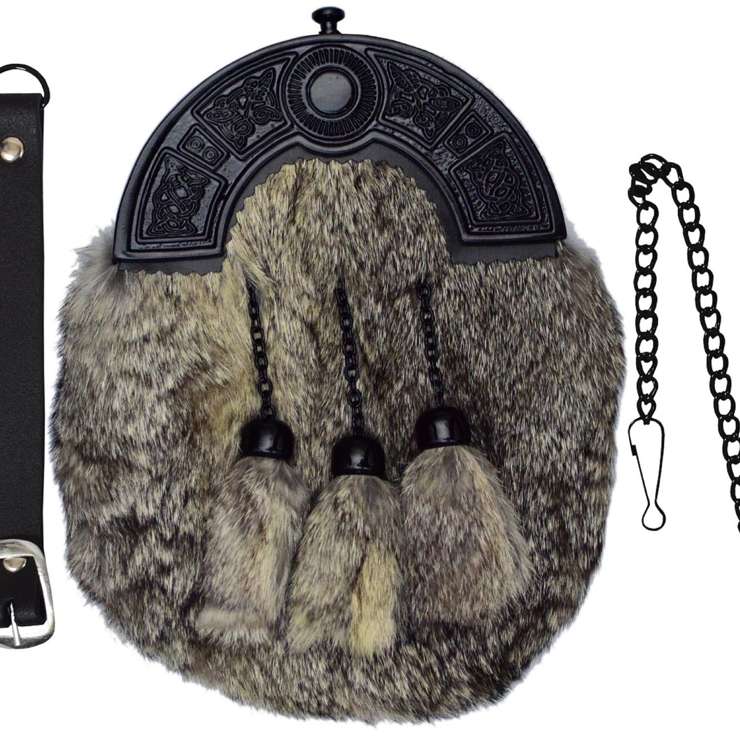 This sporran is handmade with the best quality leather & Grey rabbit fur to very high standards.