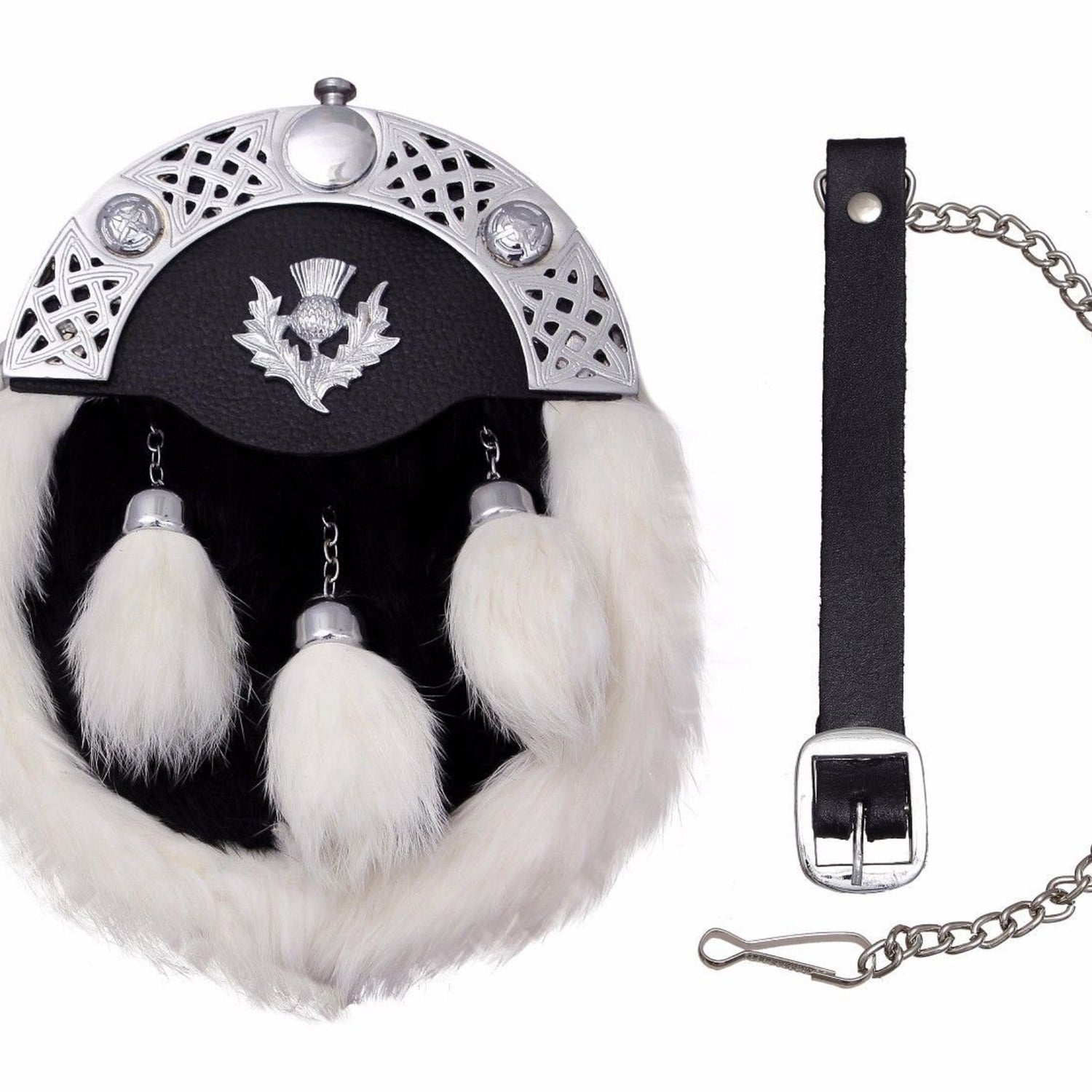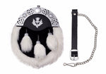 This sporran is handmade with the best quality leather & White rabbit fur to very high standards.