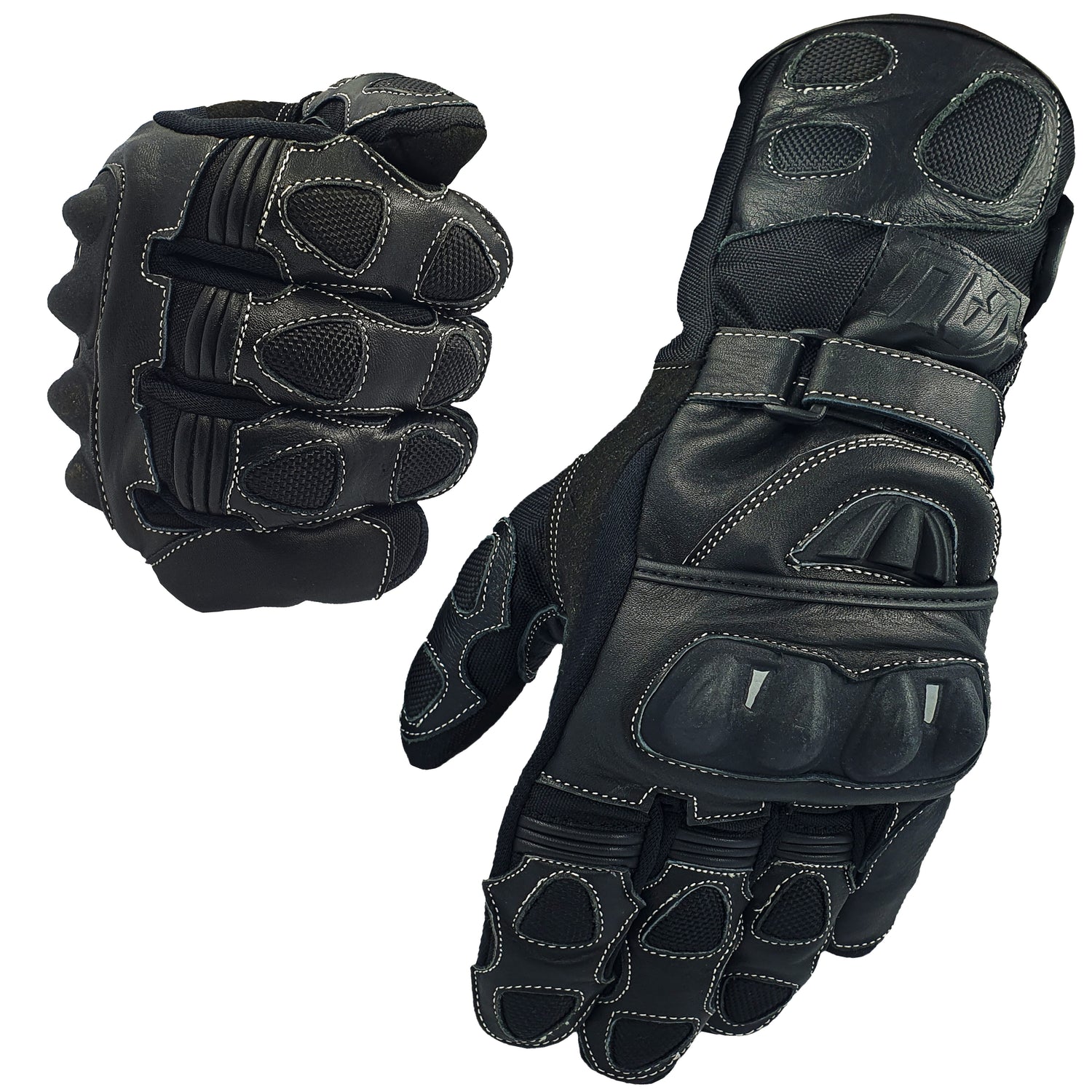 Black Polar Force Leather Waterproof Thermal Winter Motorcycle Motorbike Gloves