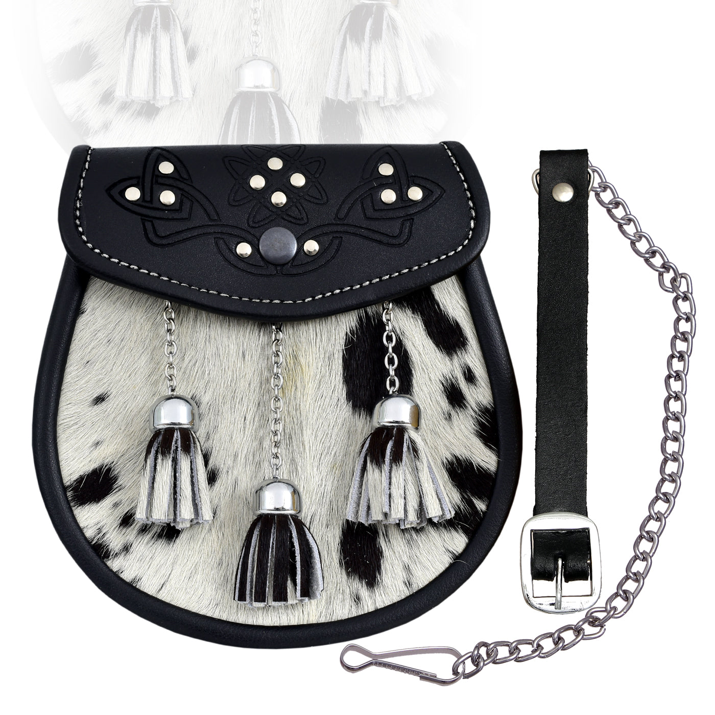 Arctic Unique sporrans made by professional craftsman experts in Scottish products. MATERIAL: Black Leather Sporran. Made of 100% pure premium leather. CHAIN STRAP: Brass Chrome Finish Chain Strap. Free chain...