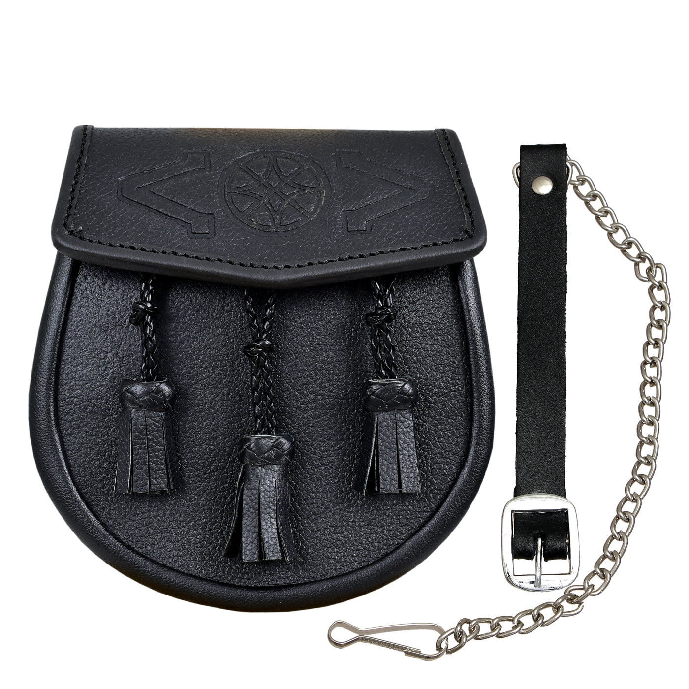 Black Celtic Embossed Leather Kilt Sporran Leather Sporran