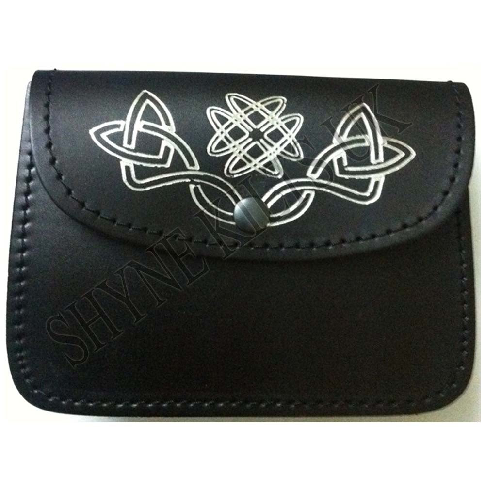 Black Kilt Belt Pouch With Celtic Embossed Silver100% real Leather sporran/pouch