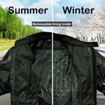 Made from Cordura. Fully waterproof. Removable inner quilted lining. 2 Air vent on front & 2 at the back. CE Approved shoulder and elbow armour. Buttoned adjustable arm size. Buckled...