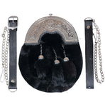BLACK RABBIT FUR FULL DRESS SPORRAN WITH CHROME FINISH CANTLE 3 BLACK TASSELS