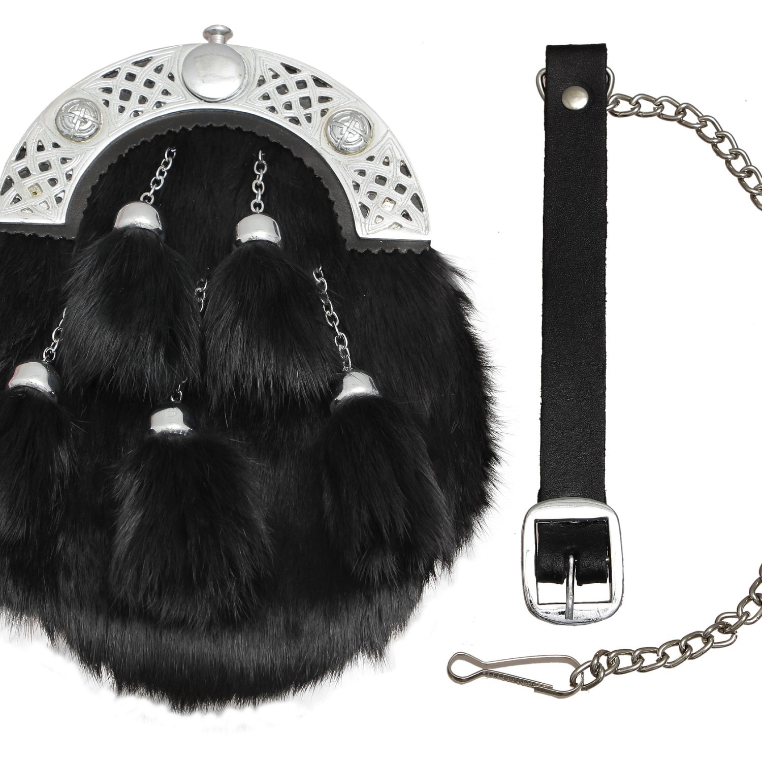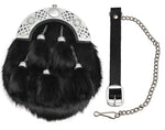 BLACK RABBIT FUR FULL DRESS SPORRAN WITH CHROME FINISH CANTLE 5 BLACK TASSELS