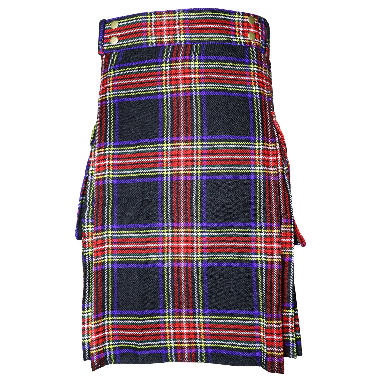 Black Stewart Tartan Utility Kilts for Men 8 Yard 13oz Kilt Traditional Highland Tartan Scottish Men’s Kilt