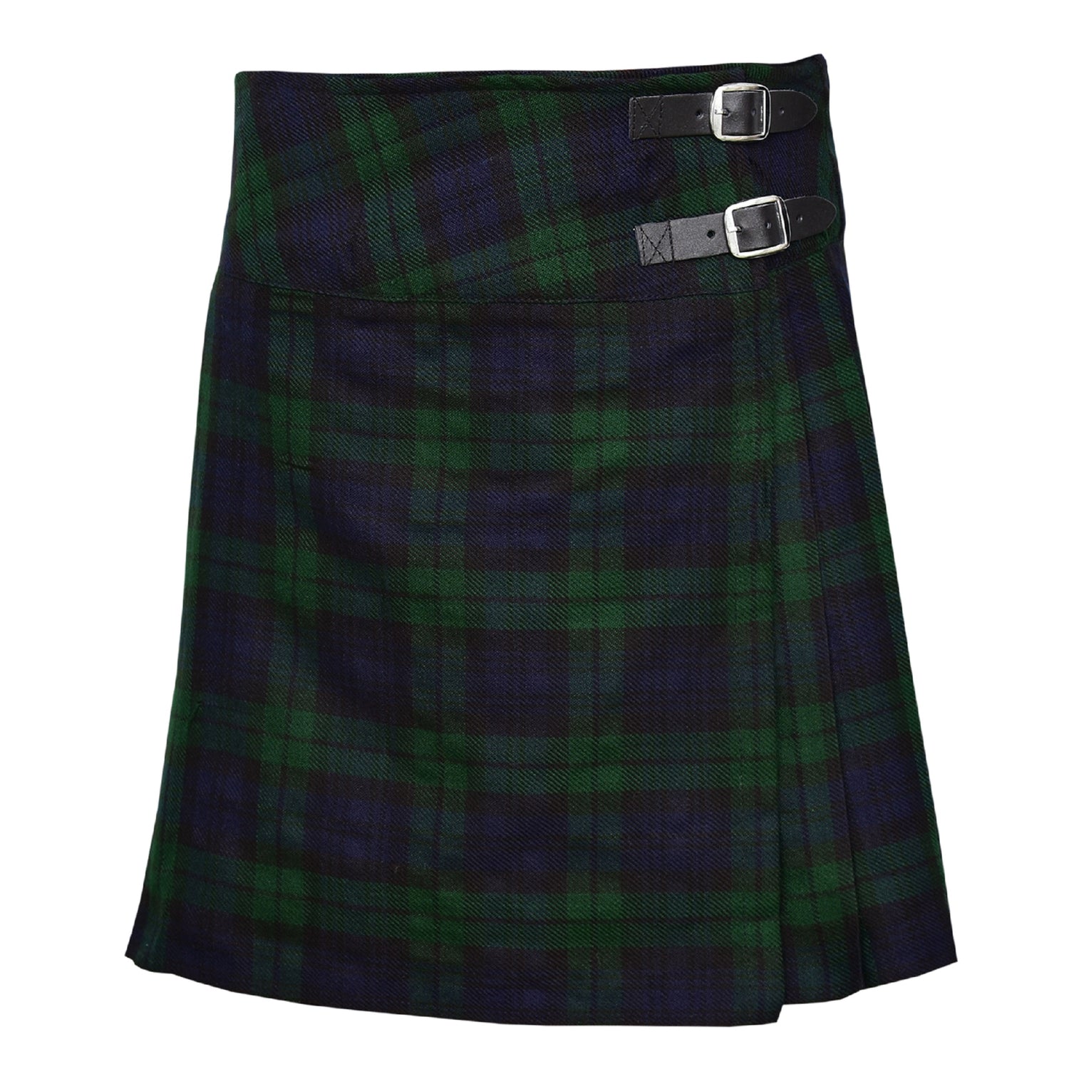Black Watch Ladies Knee Length Kilt Skirt 20" Length Tartan Pleated Kilts Buckled Straps