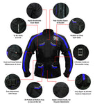 Blue Motorcycle Jacket for Men Adventure/Touring Textile CE Armoured Reflectors