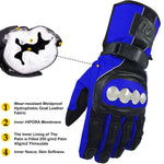 Blue Motorcycle Motorbike Gloves Waterproof Steel Knuckle Force Cordura Gloves