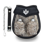 Boy Semi Dress Grey Fur Kilt Sporran with a Thistle Emblem & Chain Belt