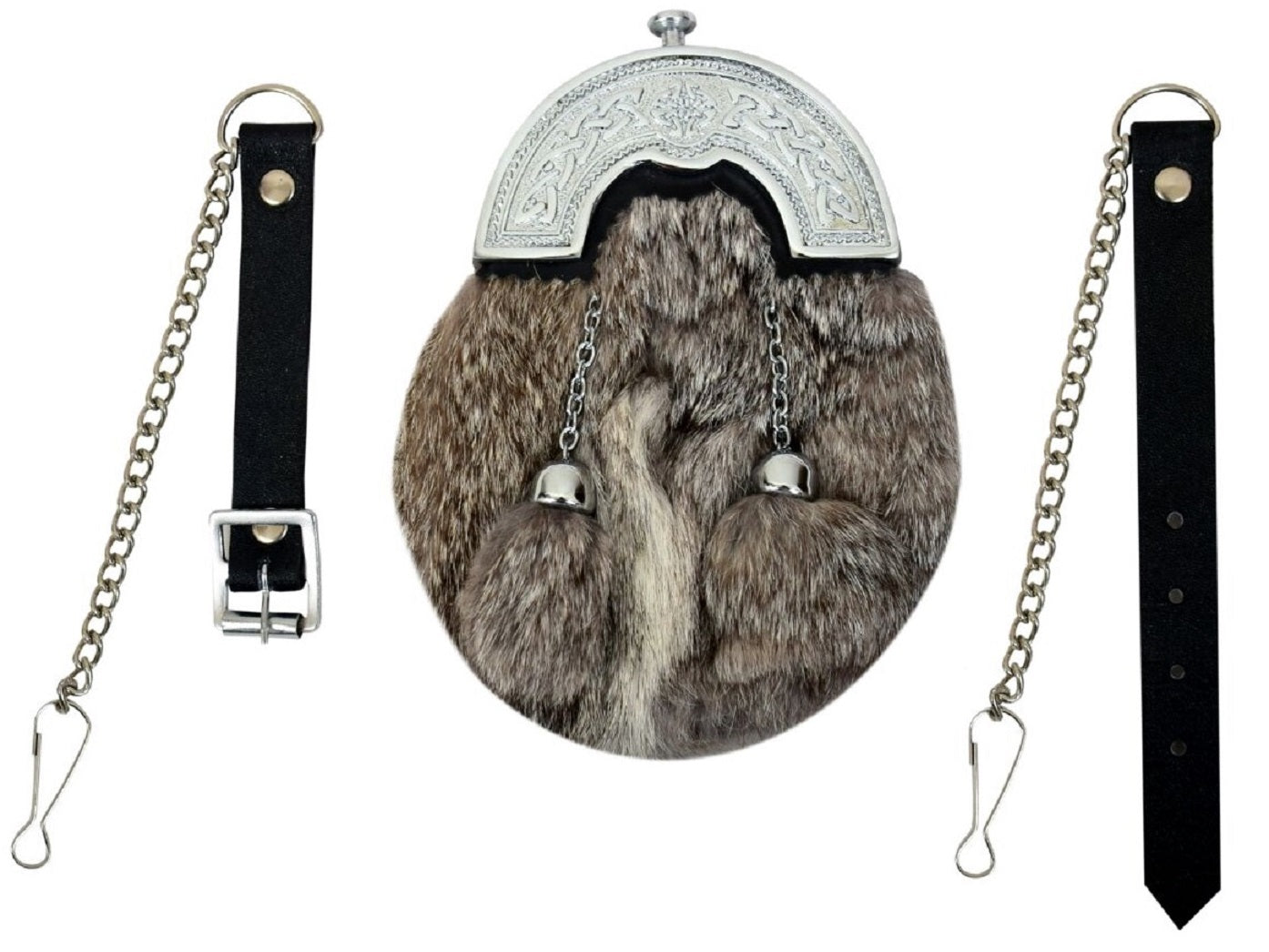 CHILDREN BOY GREY RABBIT FUR FULL DRESS SPORRAN CHROME FINISH CANTLE 2 TASSELS