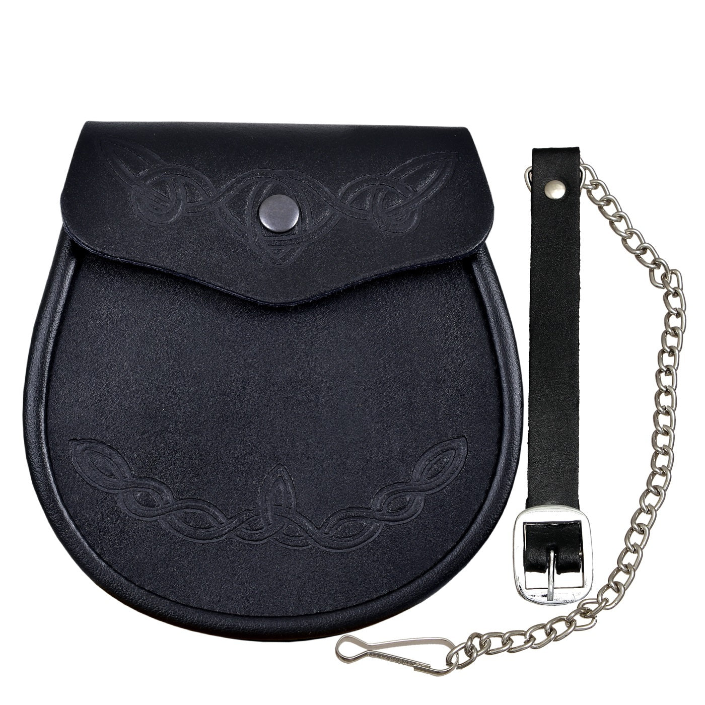 Embossed Leather Smooth Kilt Sporran With Celtic Pattern Free Chain Strap