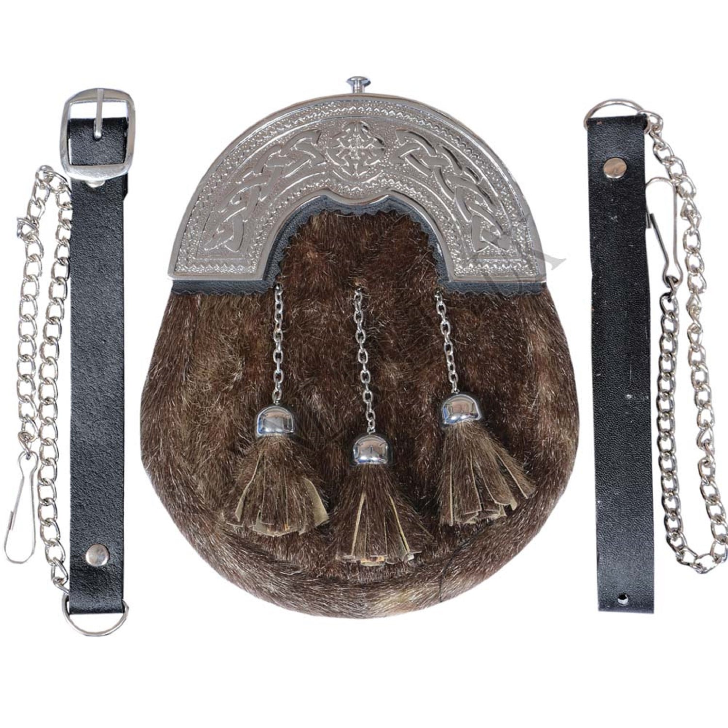 GENUINE SEAL FUR & LEATHER SCOTTISH SPORRAN & CHAIN BELT KILT ACCESSORIES