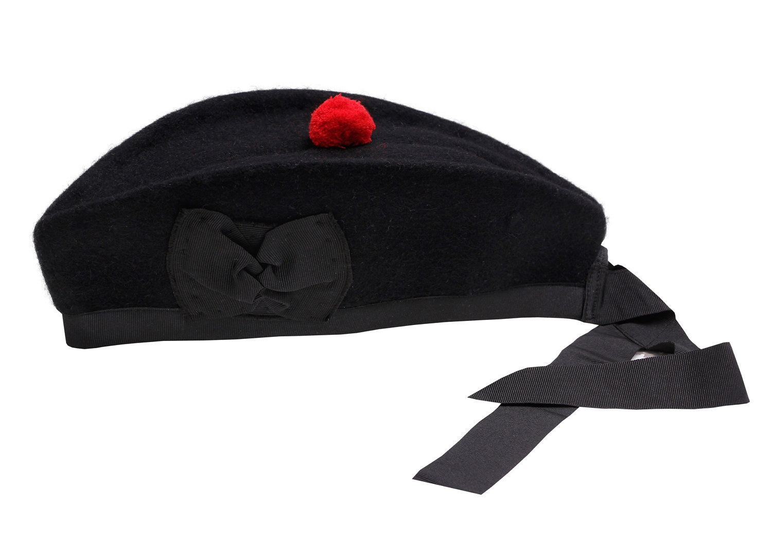 Glengarry Hat Plain Black -100% Pure Wool Classic Scottish Design SIZES 50-64CM