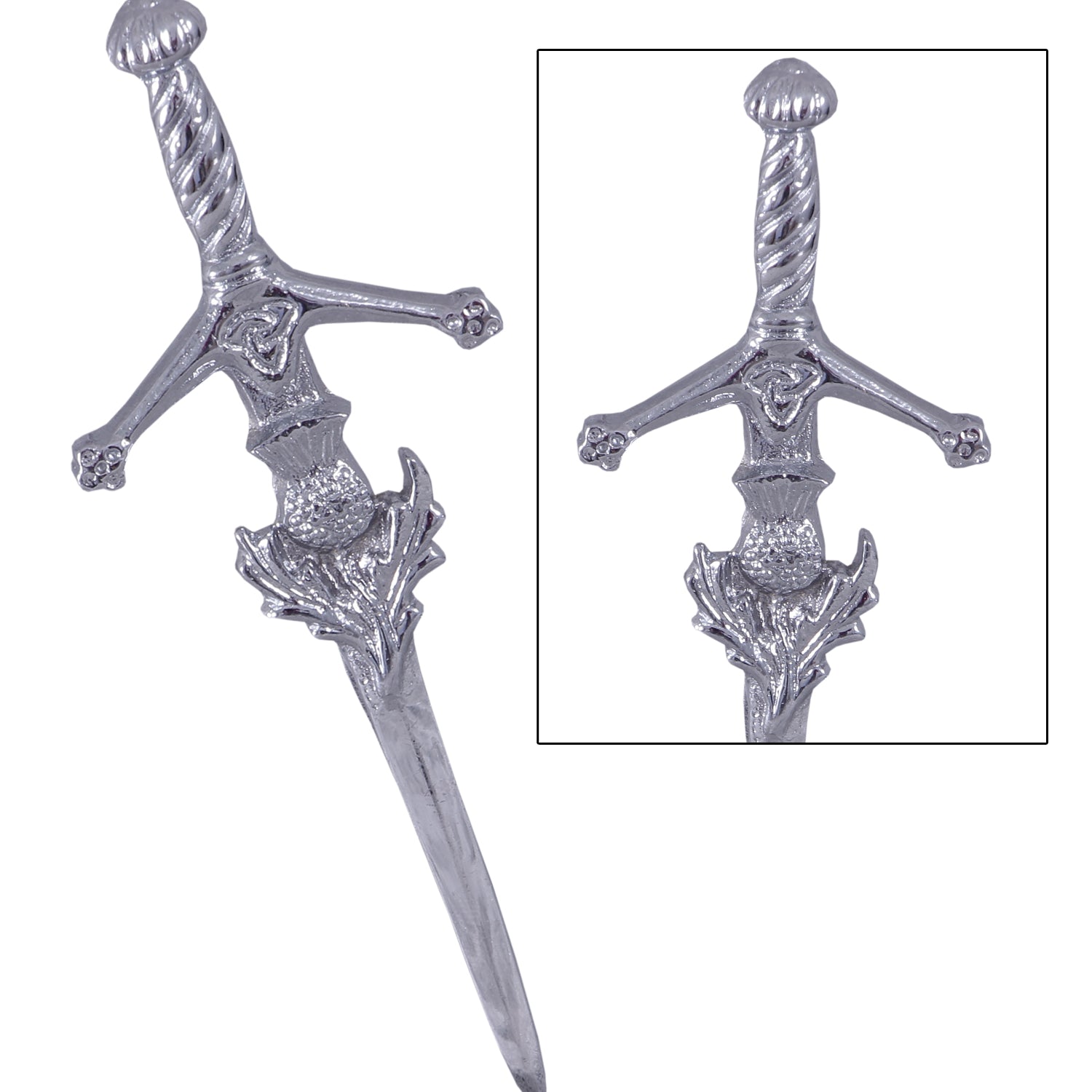 Highland Scottish Kilt Pins In Chrome Finish - THISTLE KILT PIN