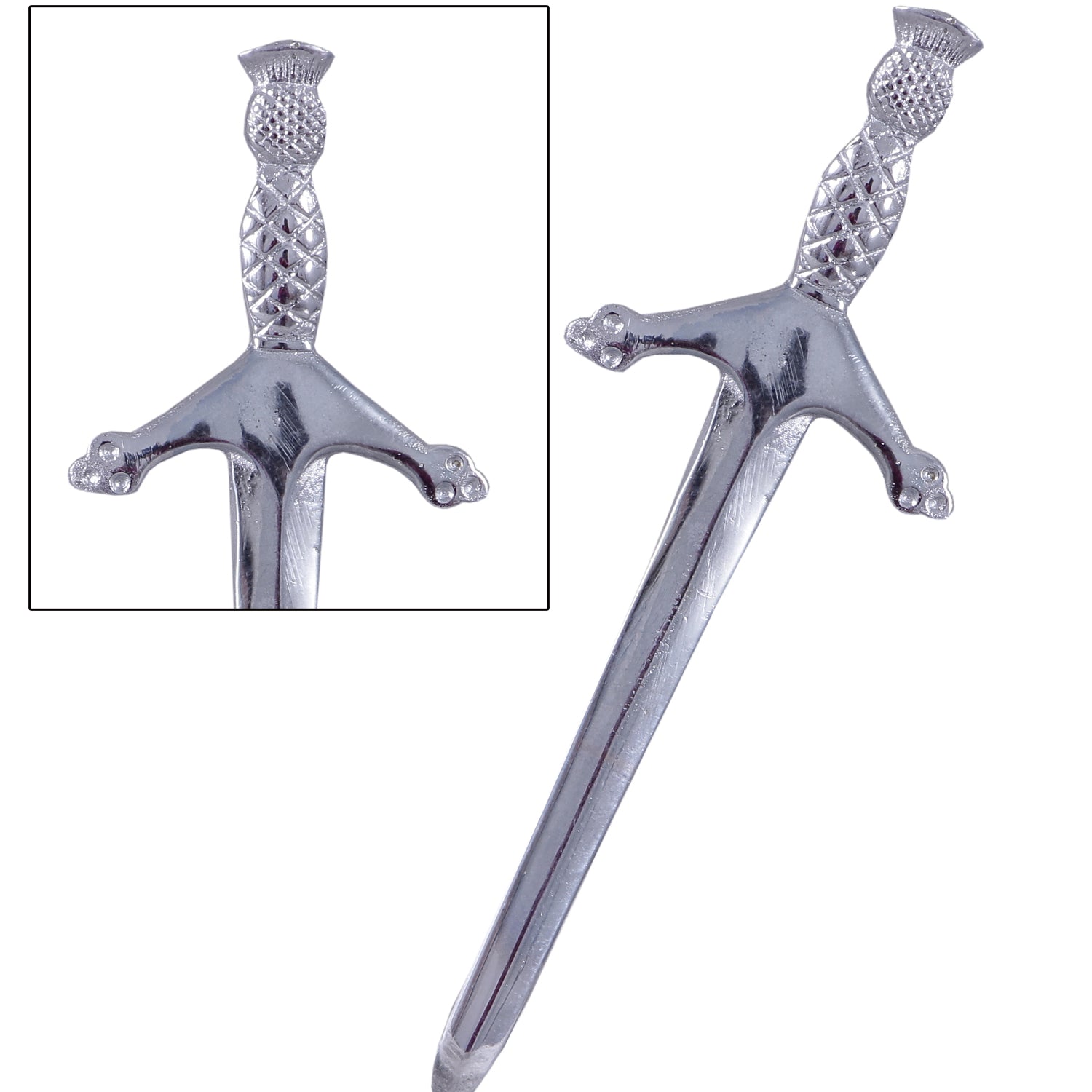 Highland Scottish Kilt Pins In Chrome Finish - THISTLE SWORD KILT PIN