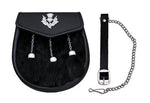 Arctic Unique sporrans made by professional craftsman experts in Scottish products. MATERIAL: Black Leather Sporran. Made of 100% pure premium leather. CHAIN STRAP: Brass Chrome Finish Chain Strap. Free chain...
