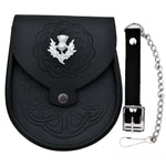 Leather Sporran Double Embossed Scottish Black Leather Kilt Sporran