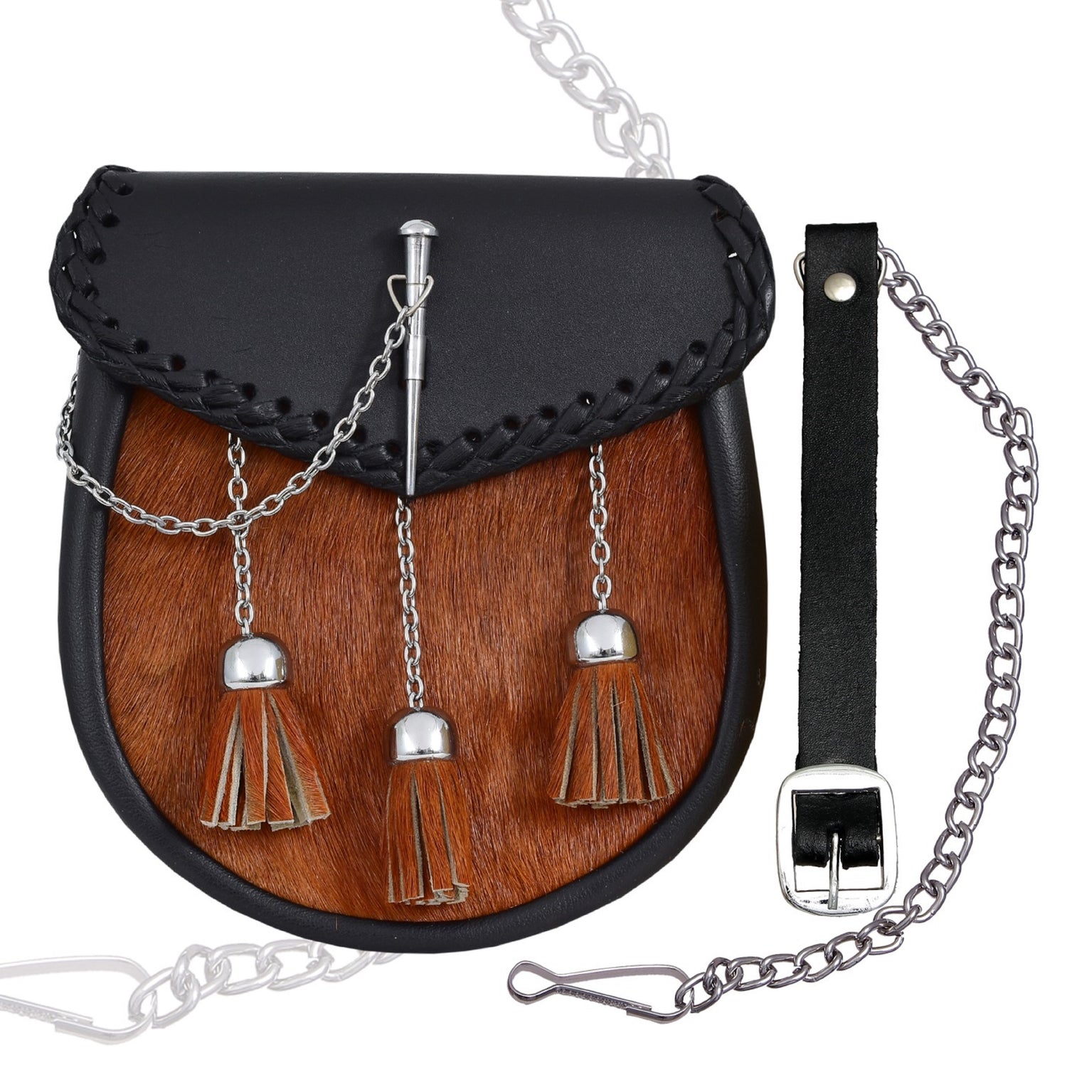 Leather Sporran Pin Drop Sporran 3 Tassels Calf Skin Semi Dress Sporran