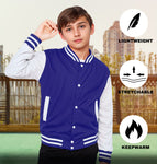 NAVY BLUE/WHITE Kids Baseball Jackets Boys Girls Fit Varsity Jacket Casual Team Uniform Plain Button School Coat