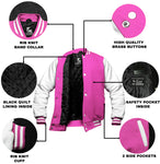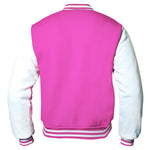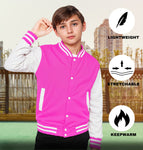 Pink/White Kids Baseball Jackets Boys Girls Fit Varsity Jacket Casual Team Uniform Plain Button School Coat