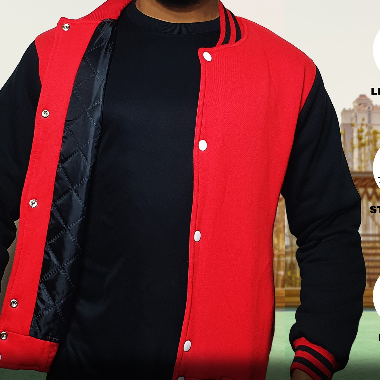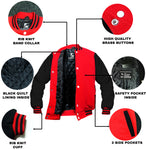 Red/Black Kids Baseball Jackets Boys Girls Fit Varsity Jacket Casual Team Uniform Plain Button School Coat