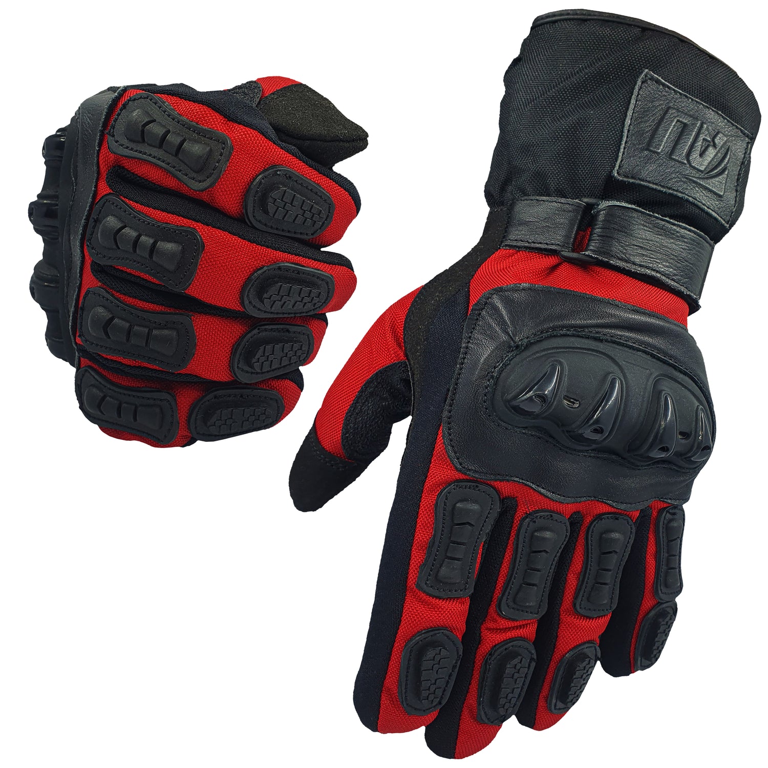 Red Motorcycle Leather Gloves Motorbike Protection Hard Knuckle Motorbike Textile