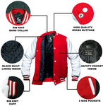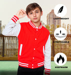 Red/White Kids Baseball Jackets Boys Girls Fit Varsity Jacket Casual Team Uniform Plain Button School Coat