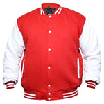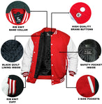 Red/White Men's Varsity Jacket Causal Slim Fit Cotton Letterman Baseball Bomber Jackets