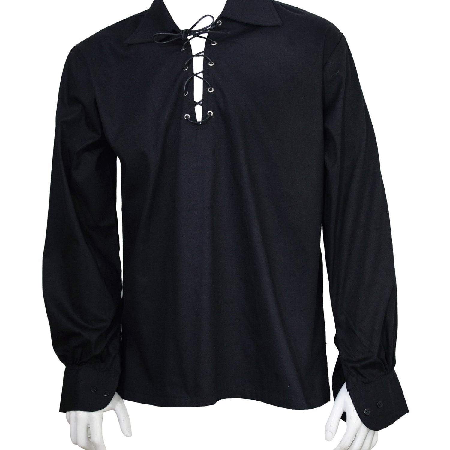Scottish Black Jacobite Ghillie Kilt Shirt Leather Cord Sizes S,M,L,XL,XXL
