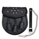Scottish Black Leather Kilt Sporran With Tassels Leather Sporran