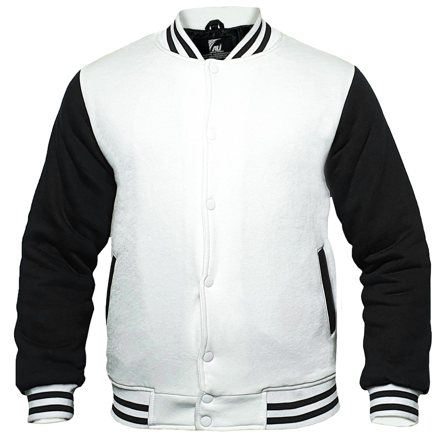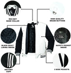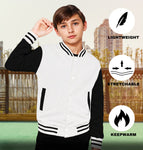 White/Black Kids Baseball Jackets Boys Girls Fit Varsity Jacket Casual Team Uniform Plain Button School Coat